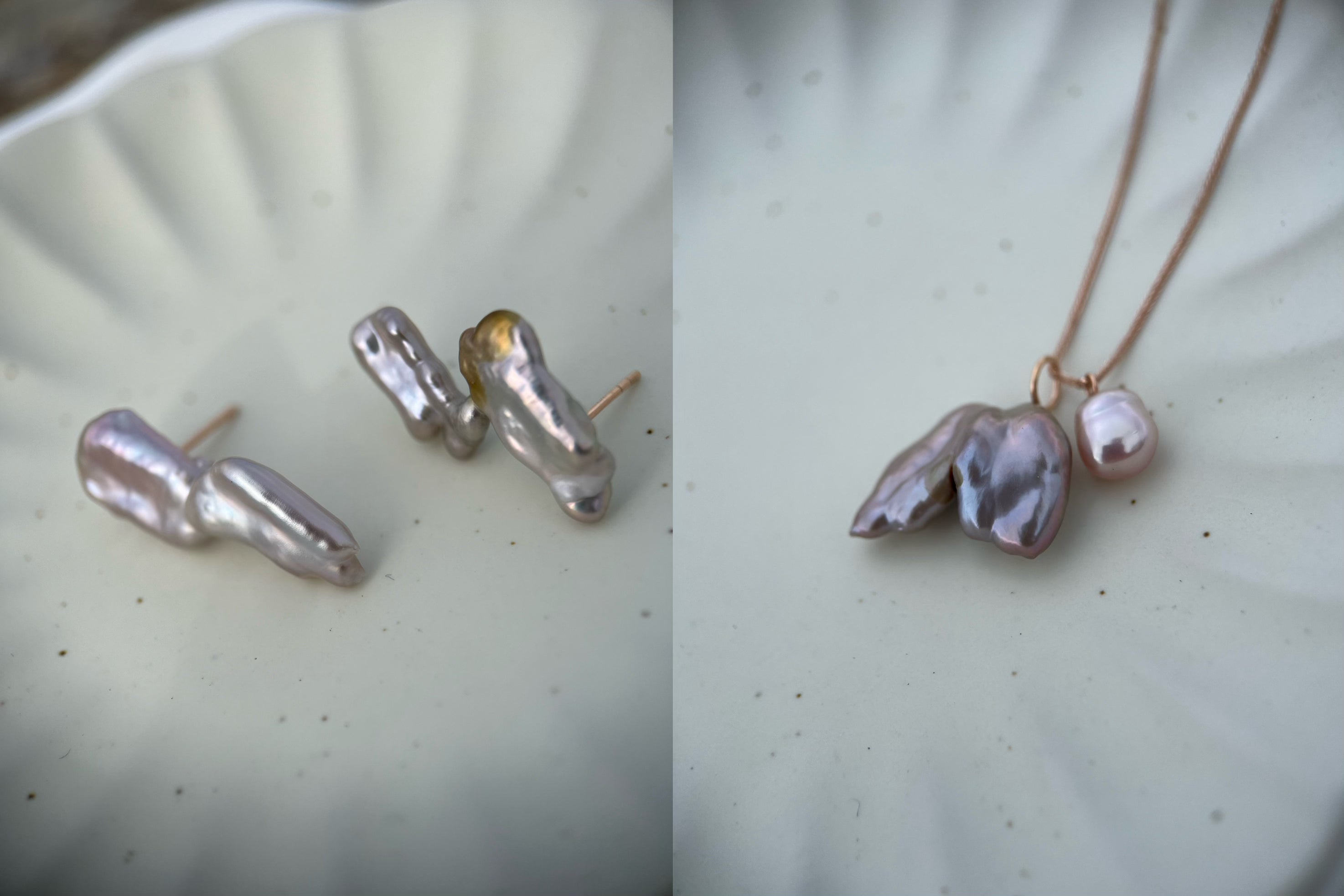 Each pearl is hand-selected for its unique shape and iridescent beauty, and each piece of jewelry is handcrafted with a commitment to the highest quality and sustainability. We use 100% recycled gold/silver and authentic Biwa/Akoya pearls. Our suppliers are chosen for their dedication to ethical practices.
