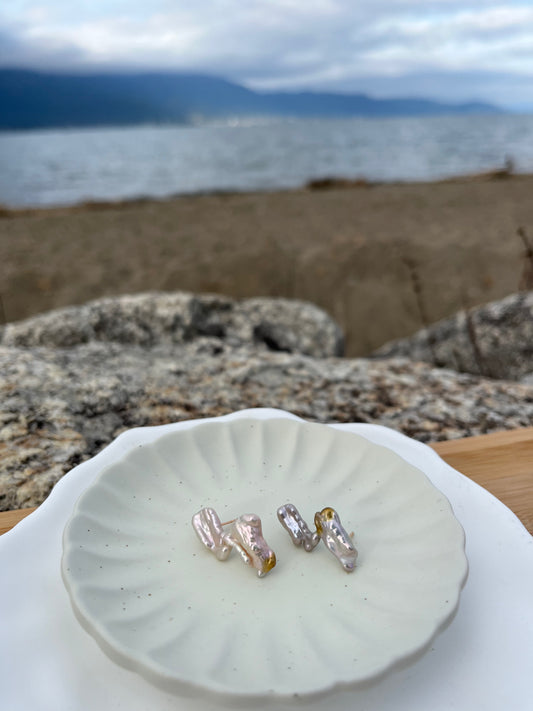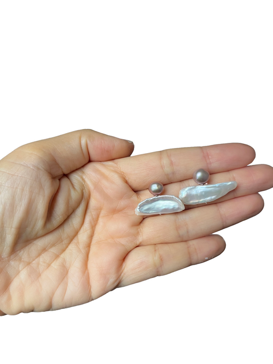18K Mizumi Moon Earrings with Certified Biwa Pearls