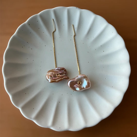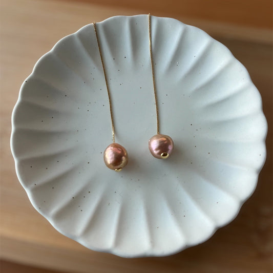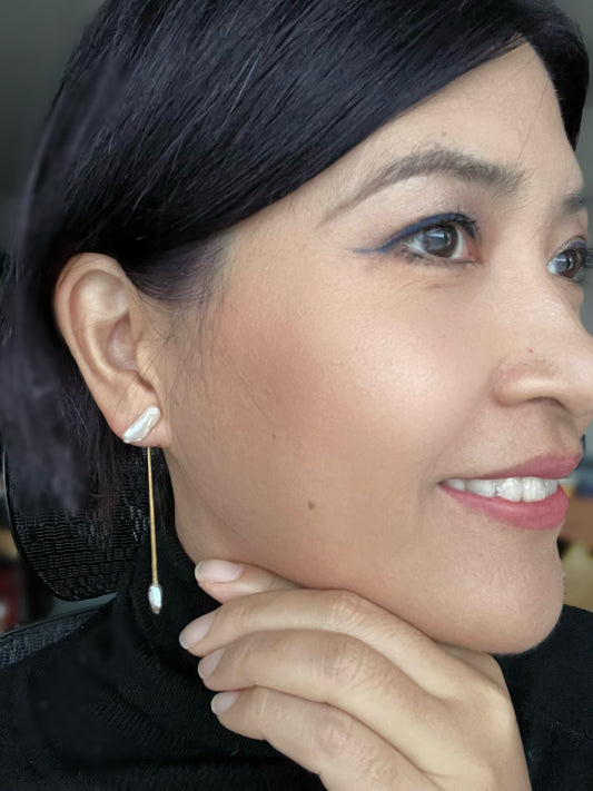 18K Mizumi Zen Earrings with Certified Biwa Pearls