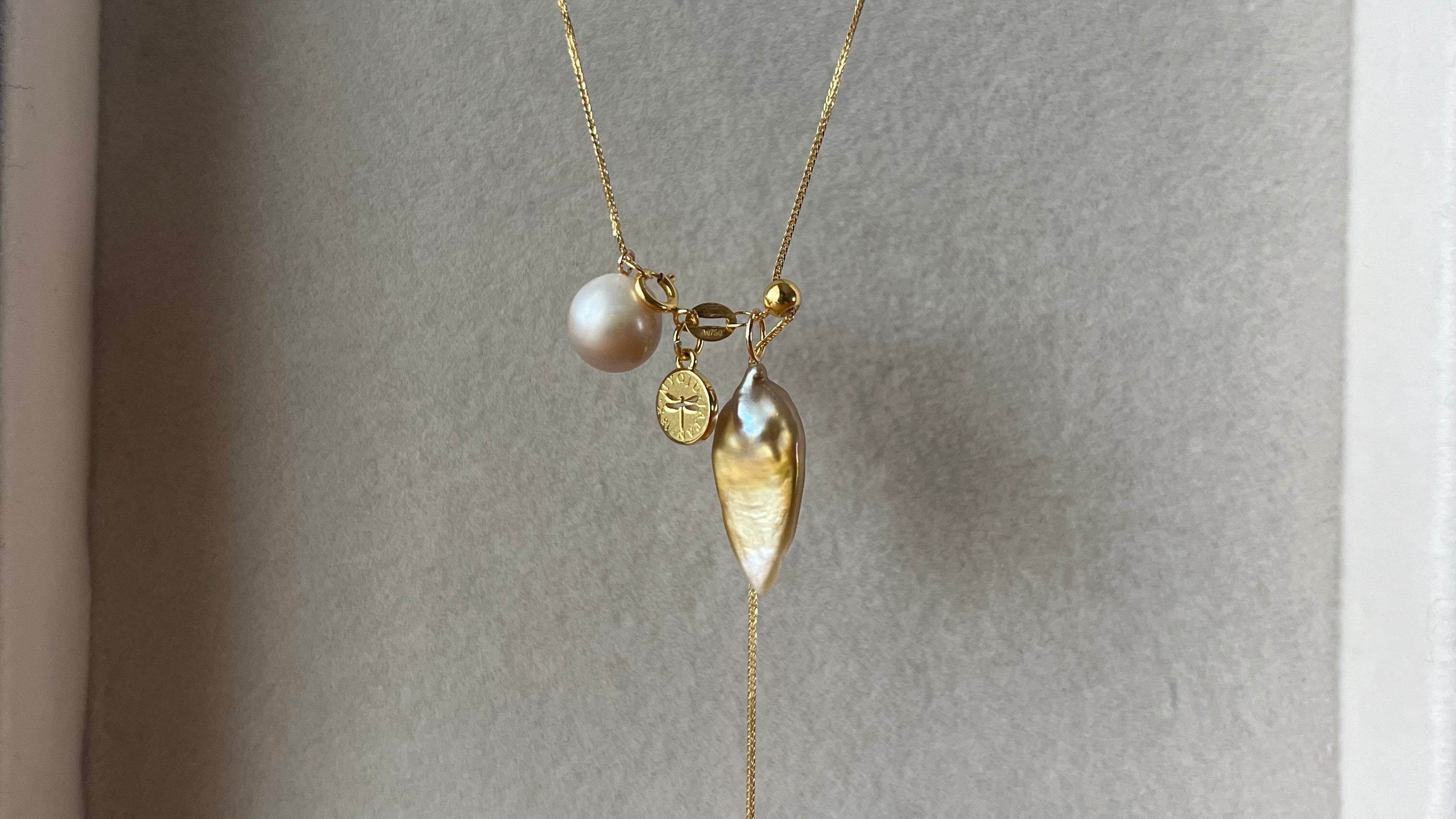 18K Mizumi Wings Necklace with Certified Biwa Pearls (limited edition)