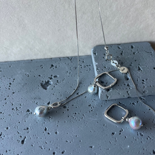 Hikari, meaning “light” in Japanese, celebrates inner radiance with a blend of baroque Akoya and Biwa pearls. Their natural imperfections, blue tones, and organic luster reflect the raw, authentic beauty of the sea—quietly bold and deeply soulful.
