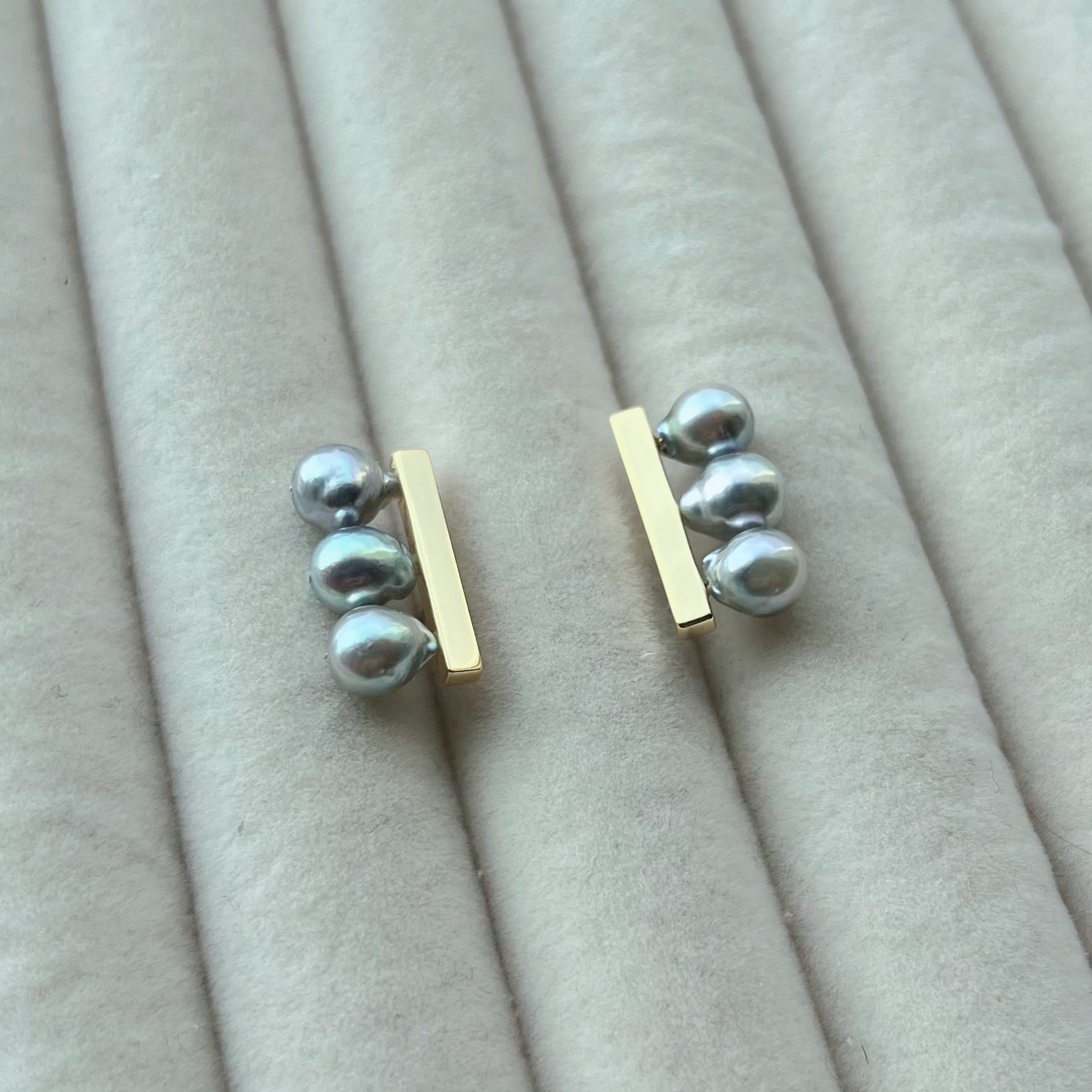 Hikari Kōbō means “radiance,” capturing the luminous glow that pearls naturally hold. This design balances modern simplicity with timeless elegance, letting light itself become part of the adornment.