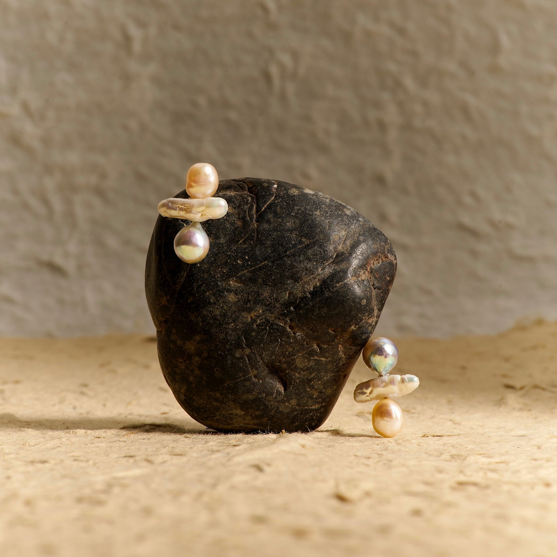 Tsumiki, meaning “stacking blocks”, features a vertical arrangement of pearls that evoke balance, intention, and quiet growth. With each pearl like a step upward, these earrings reflect the beauty of simplicity layered with meaning.